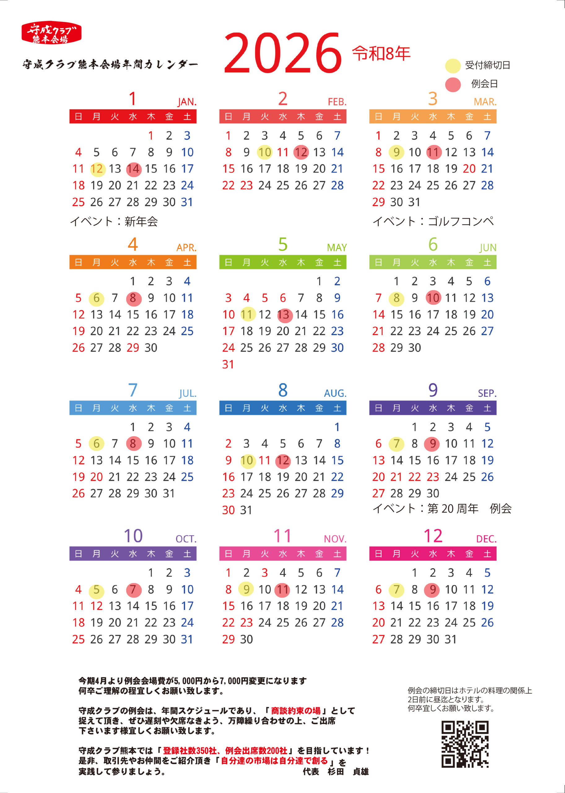 例会開催場所:メルパルク熊本 ★例会参加の方は基本会費 5,000円 (飲食あり・金額変更あり) ※キャンセルされた場合キャンセル料が発生致します。 |